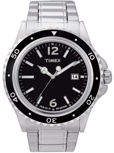 Quartz movement Dress watch Silver-tone luminous hand and markers Silver-tone numbers White indices on outer dial Analog date display Indiglo night-light Polished unidirectional bezel embossed with silver-tone numbers over black enamel Polished stainless steel case and crown Brushed stainleTimex Men's T2M561 R-Series Classic Silver-Tone Bracelet Sport Watch Do not Miss!! Quartz movement Dress watch Silver-tone luminous hand and markers Silver-tone numbers White indices on outer dial Analog date display Indiglo night-light Polished unidirectional bezel embossed with silver-tone numbers over black enamel Polished stainless steel case and crown Brushed stainle... Timex Men's T2M561 R-Series Classic Silver-Tone Bracelet Sport Watch