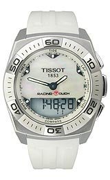 Stainless steel case with a white silicone strap. Fixed stainless steel bezel. White mother of pearl dial with luminous hands and index hour markers. Minute markers around the outer rim. Dial Type: Analog-digital. Luminescent hands and markers. Digital dual time display. Quartz movement. Scratch resTissot Racing T-Touch White Rubber Mens Watch T0025201711100 Do not Miss!! Stainless steel case with a white silicone strap. Fixed stainless steel bezel. White mother of pearl dial with luminous hands and index hour markers. Minute markers around the outer rim. Dial Type: Analog-digital. Luminescent hands and markers. Digital dual time display. Quartz movement. Scratch res... Tissot Racing T-Touch White Rubber Mens Watch T0025201711100