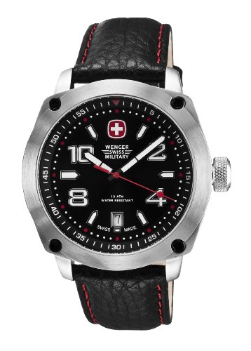 79373 Features: -Wrist watch.-Black and red dial.-Genuine black leather strap.-Swiss quartz movement.-Water-resistant to 100m (330 ft.).-Luminous hands, numerals.-and markers.-Date display.-Mineral crystal. Warranty: -Manufacturer provides 3 year limited warranty. Swiss quartz movement Luminous handWenger Swiss Military Men's 79373 Outback Analog Watch Do not Miss!! 79373 Features: -Wrist watch.-Black and red dial.-Genuine black leather strap.-Swiss quartz movement.-Water-resistant to 100m (330 ft.).-Luminous hands, numerals.-and markers.-Date display.-Mineral crystal. Warranty: -Manufacturer provides 3 year limited warranty. Swiss quartz movement Luminous hand... Wenger Swiss Military Men's 79373 Outback Analog Watch
