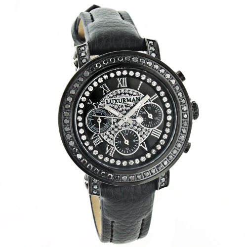 This Ladies Black Diamond Watch by LUXURMAN Watches showcases 2.15 carats of sparkling black diamonds. This Luxurman diamond watch features a black mother of pearl dial paved in sparkling stones with three subdials, a black tone stainless steel case and a black genuine leather band. Ladies Black Diamond Watch 2.15ct LUXURMAN Watches Do not Miss!! This Ladies Black Diamond Watch by LUXURMAN Watches showcases 2.15 carats of sparkling black diamonds. This Luxurman diamond watch features a black mother of pearl dial paved in sparkling stones with three subdials, a black tone stainless steel case and a black genuine leather band. ... Ladies Black Diamond Watch 2.15ct LUXURMAN Watches