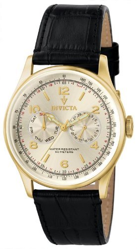 Stainless steel case with a black croco-embossed leather strap. Fixed gold-tone bezel. Sun ray dial with gold-tone hands and alternating Arabic numeral and index hour markers. Dial Type: Analog. Luminescent hands and markers. Two sub-dials displaying: day of the week and date. Swiss quartz movement.Invicta Mens Vintage Collection Watch 6750 Do not Miss!! Stainless steel case with a black croco-embossed leather strap. Fixed gold-tone bezel. Sun ray dial with gold-tone hands and alternating Arabic numeral and index hour markers. Dial Type: Analog. Luminescent hands and markers. Two sub-dials displaying: day of the week and date. Swiss quartz movement.... Invicta Mens Vintage Collection Watch 6750